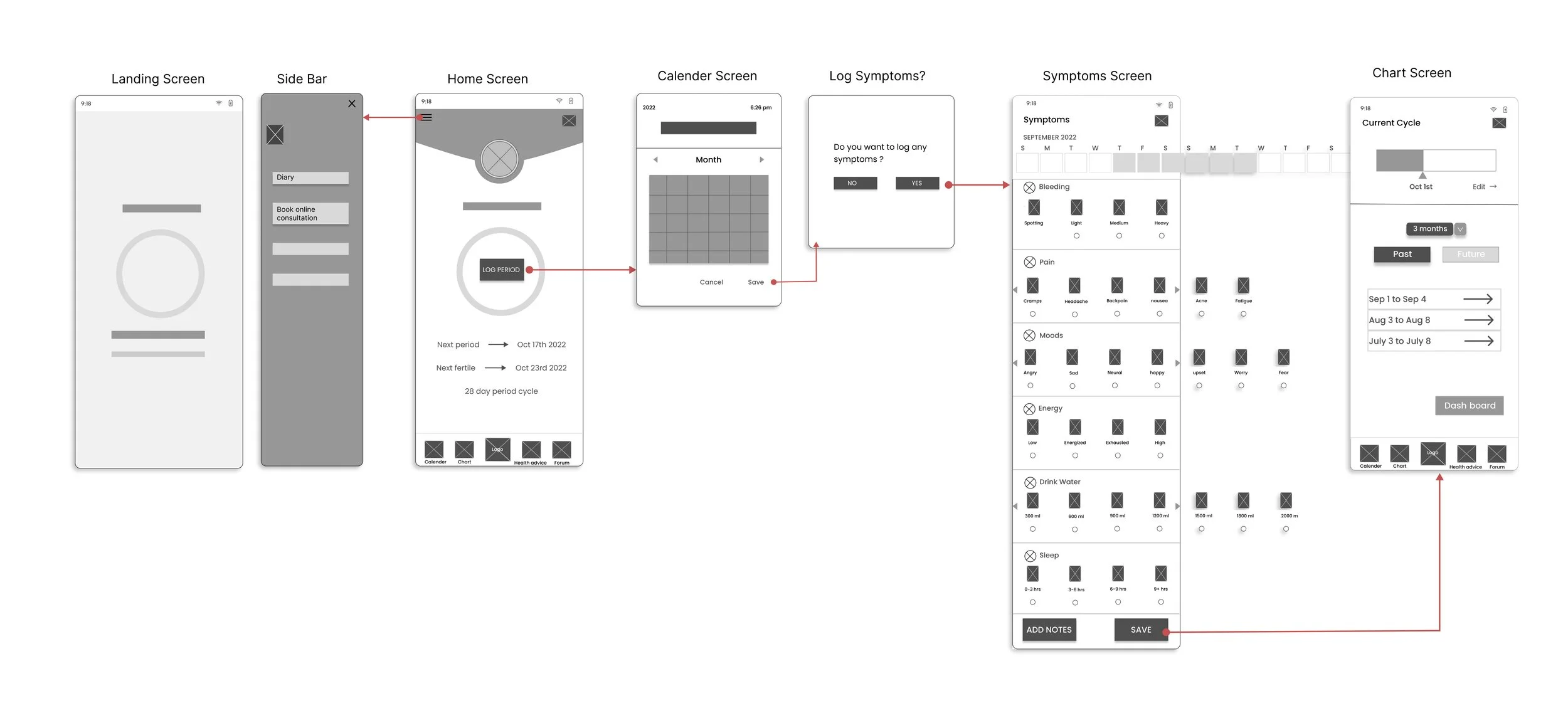 She then starts using the app and gets overwhelmed with too much information. Also, she couldn’t find any health advice section/ or forum page for questions. She doesn’t gets any reminder about her period’s due date. She then checks out the features however unable to input her moods during cycle and also there is no option to book doctor’s appointment.